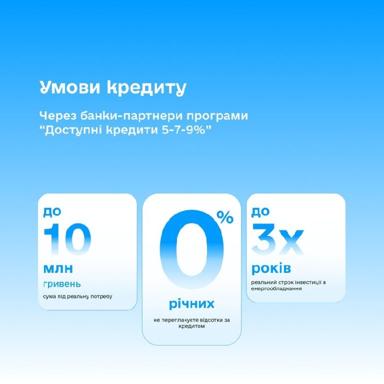 Пільгове кредитування під 0% на енергообладнання