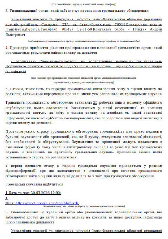 Оголошення про початок громадського обговорення звіту з оцінки впливу на довкілля