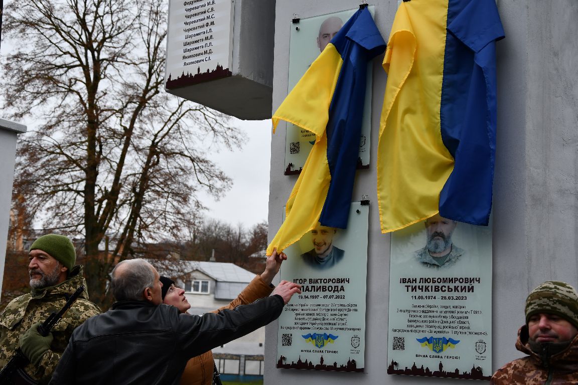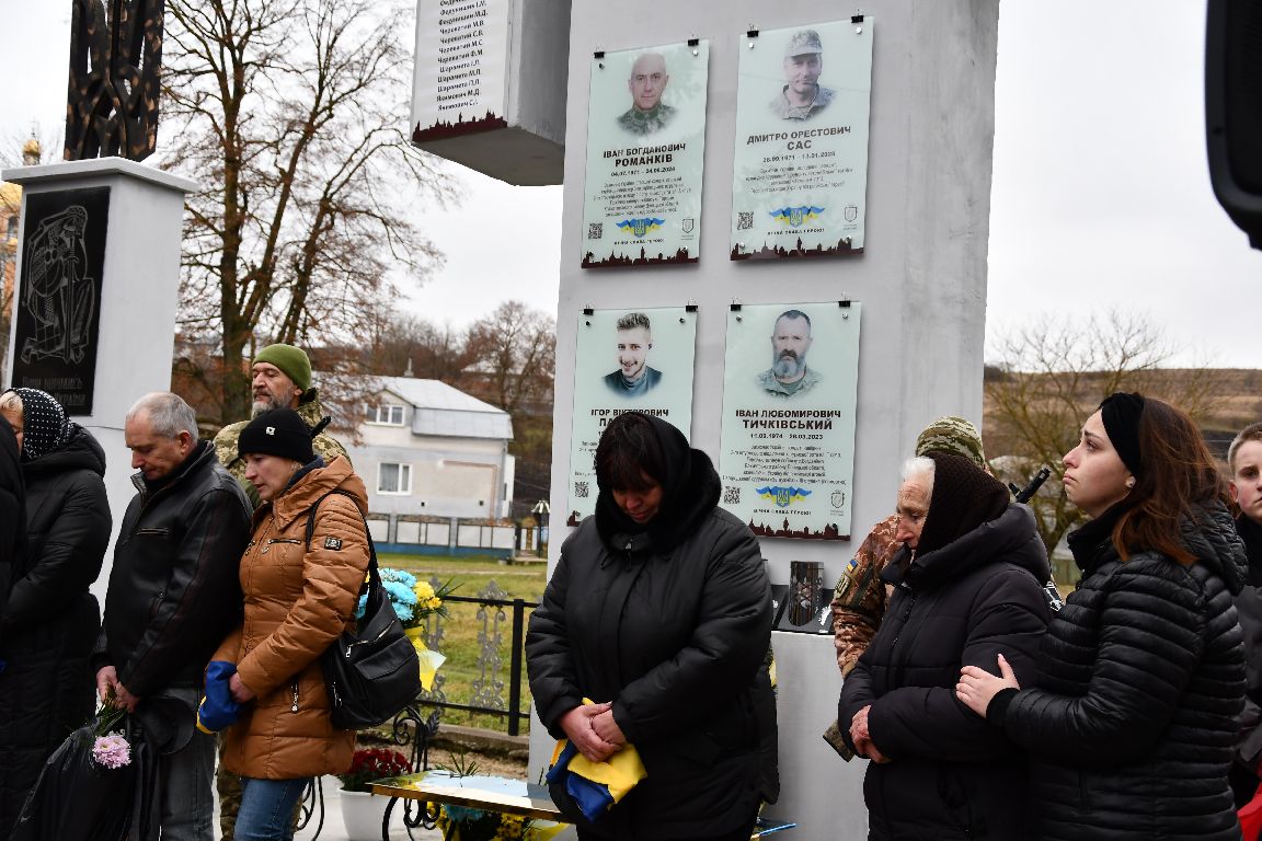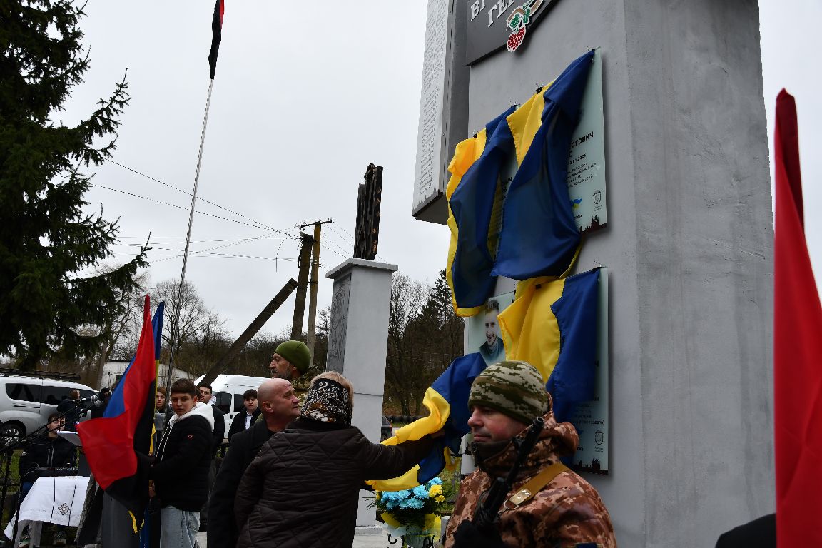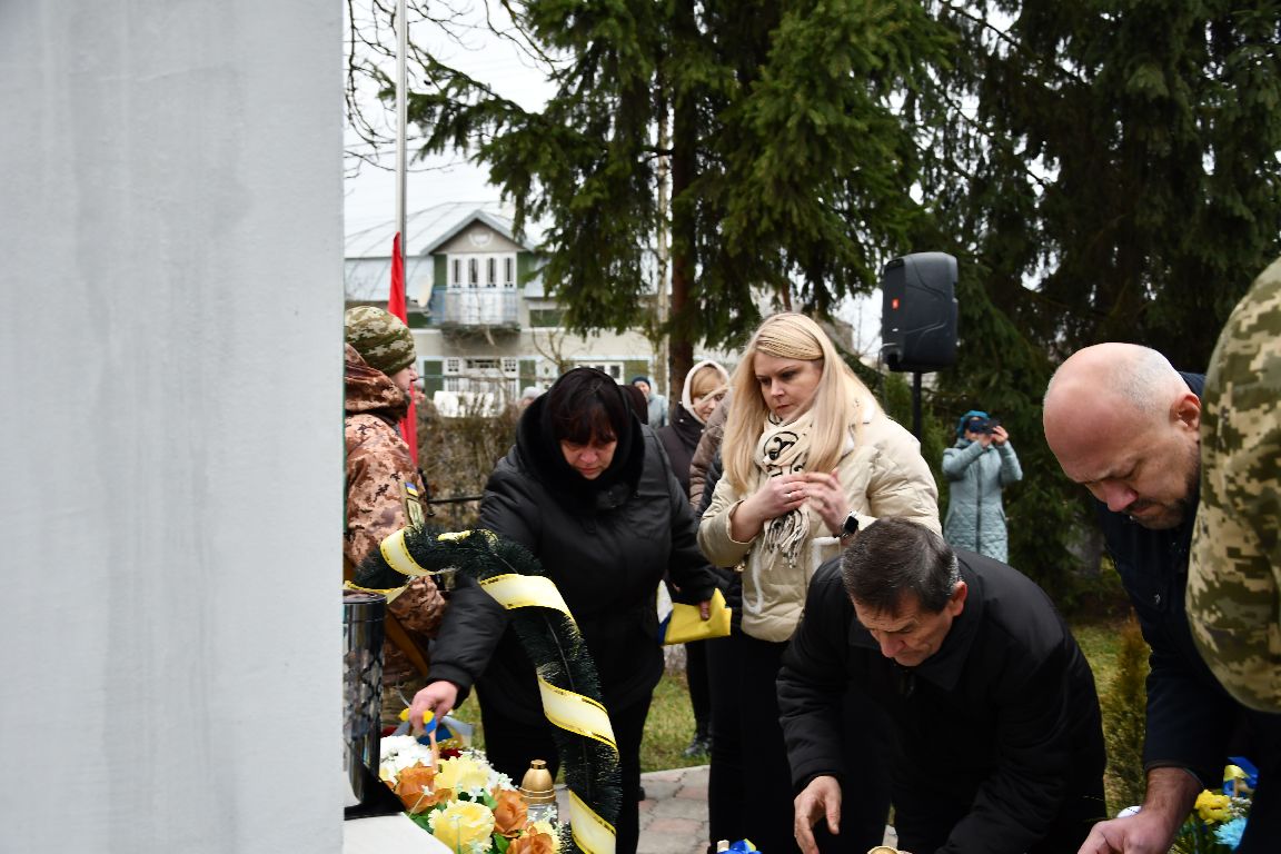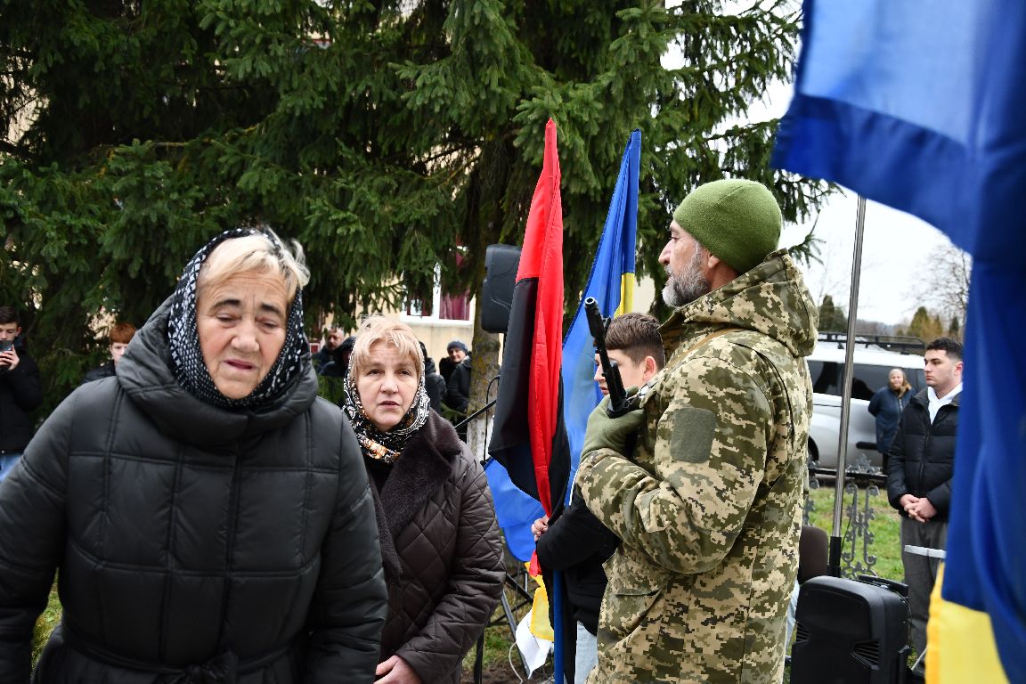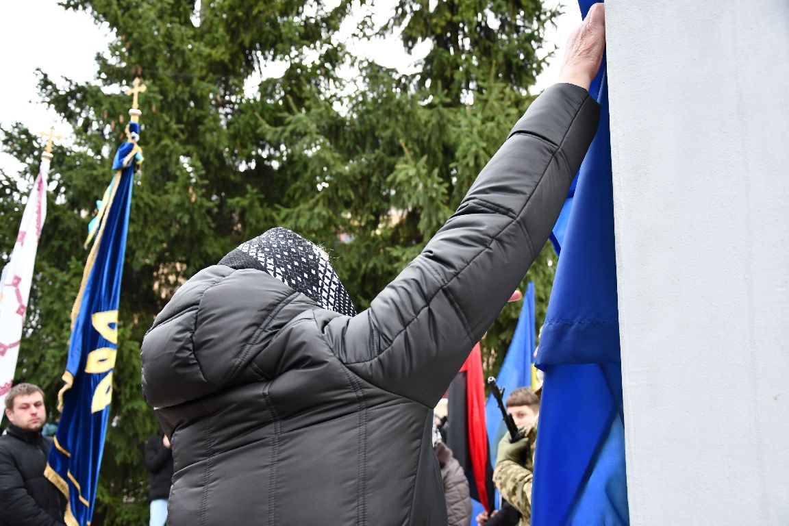 почесне право відкрити меморіальну дошку надали найріднішим. Хтось не може стримати плачу, а хтось тамує й ховає сльозу. Та всі