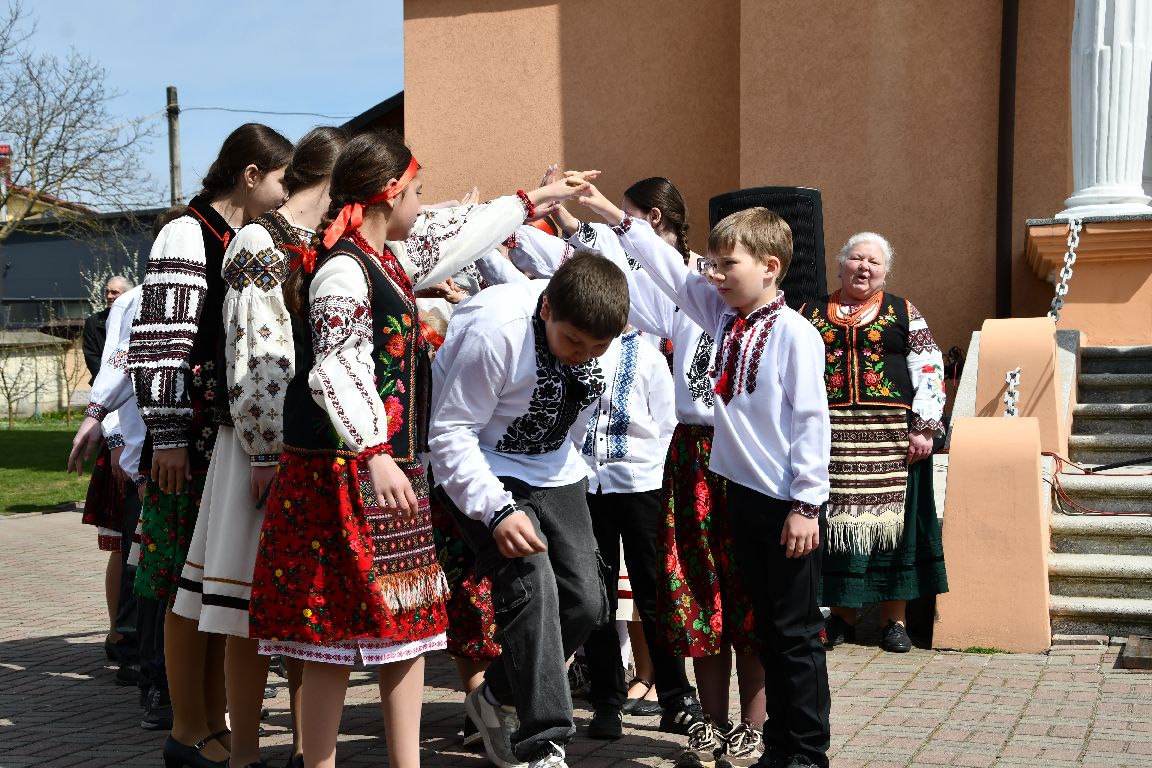 Фольклорний захід відкрили секретар міської ради Христина Сорока та декан Рогатинський УГКЦ Дмитро Бігун. Cлова о.Дмитра були прості й влучні: на подвір’ї храму Різдва Пресвятої Богородиці танцювали дитячі ніжки. І це символічно, бо там, де є дитячий крок — є майбутнє. У їхніх рухах — не просто гра, а пам’ять народу, що передається без слів. Там, де звучить дитячий сміх — не вмирає нація. У цьому — відповідь, навіщо сьогодні виводити гаївку. Не для сцени, не для звіту, а щоб не втратити себе.
