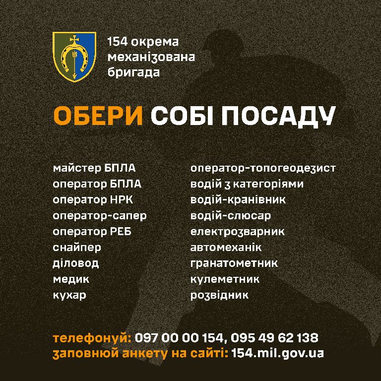Запрошуємо до 154-ої окремої механізованої бригади