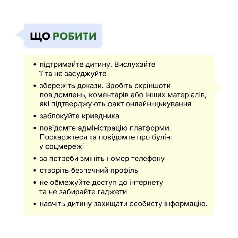діяти, щоб підтримати дитину і зупинити онлайн-цькування.