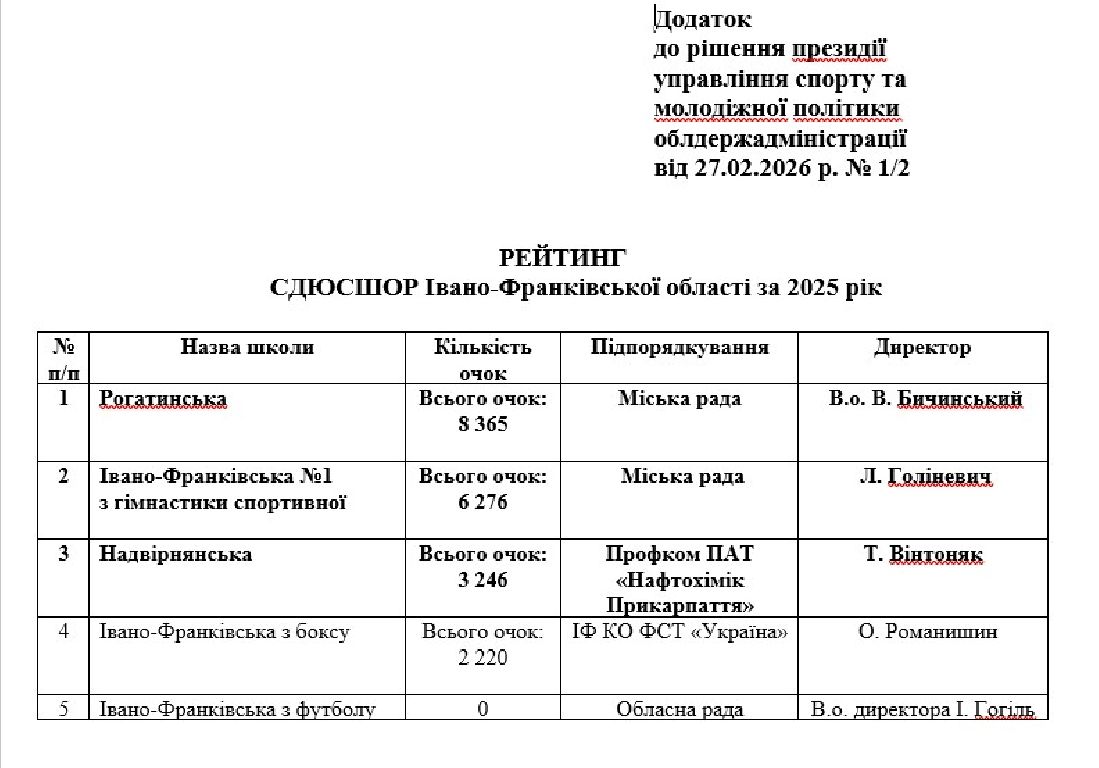 Рогатинська СДЮСШОР — лідер рейтингу спортивних шкіл Івано-Франківщини 2025 року