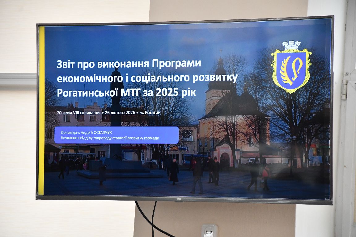 Начальник відділу супроводу стратегії розвитку громади Андрій Остапчук прозвітував про реалізацію Програми економічного і соціального розвитку за 2025 рік. Також було ухвалено рішення про встановлення з 1 березня 2026 року тарифів для комунального підприємства «Рогатинське будинкоуправління» на послуги з вивезення рідких нечистот із септиків і вигрібних ям, а також користування автовишкою.
