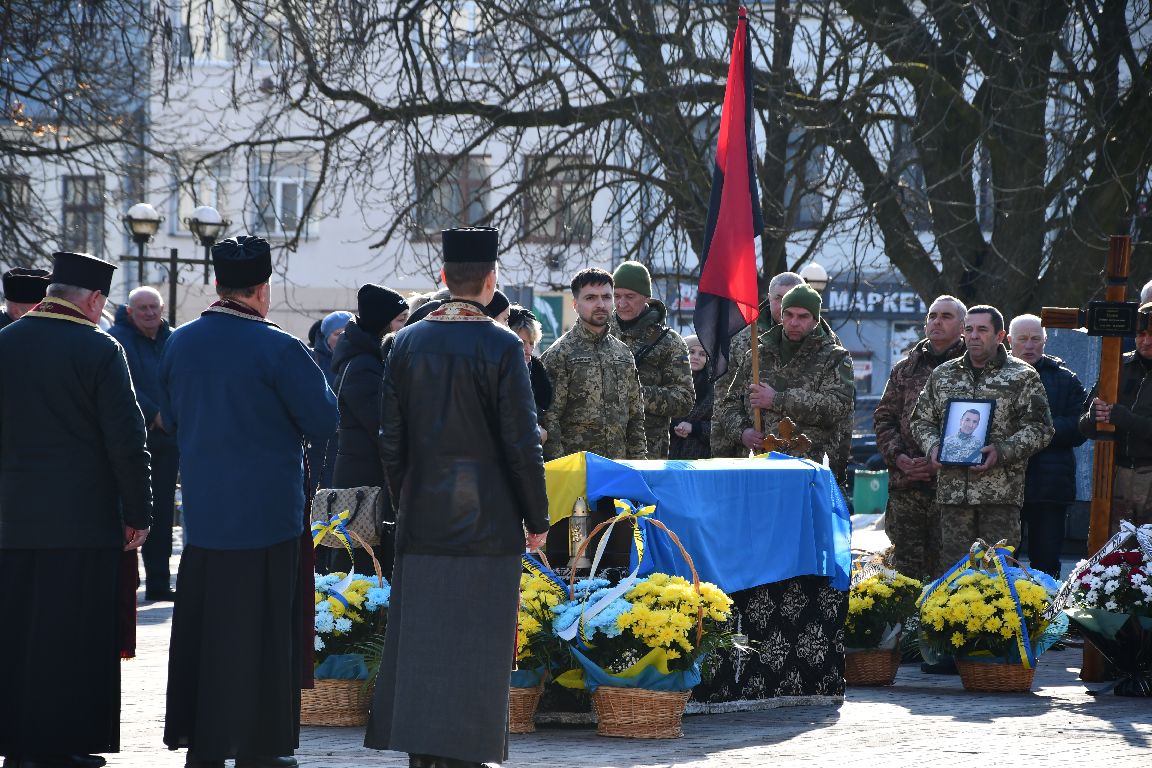 …Так, є миті, коли дорога стає останньою. Але в той час громада стала плечем підтримки, а ім’я земляка звучить не як рядок у зведенні, а як частина живої історії, яку раптово обірвала війна. Сьогодні Рогатинська громада прощалася з воїном Степаном на площі Роксолани. Люди стояли на колінах — рідні, друзі, побратими, сусіди, знайомі й незнайомі люди. Разом із громадою — військовослужбовці відділення ЦВС 4 відділу Івано-Франківського РТЦК та СП м. Рогатина. Панахида. Схилені голови. Сльози, які ніхто не ховав.